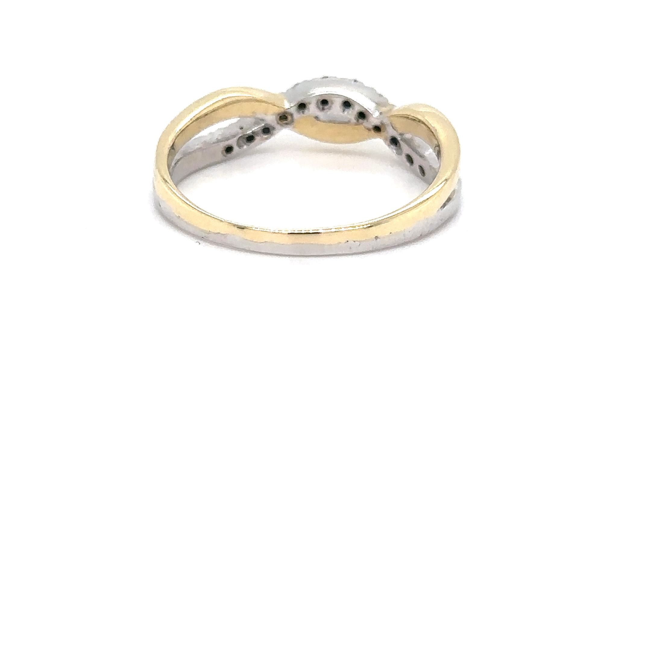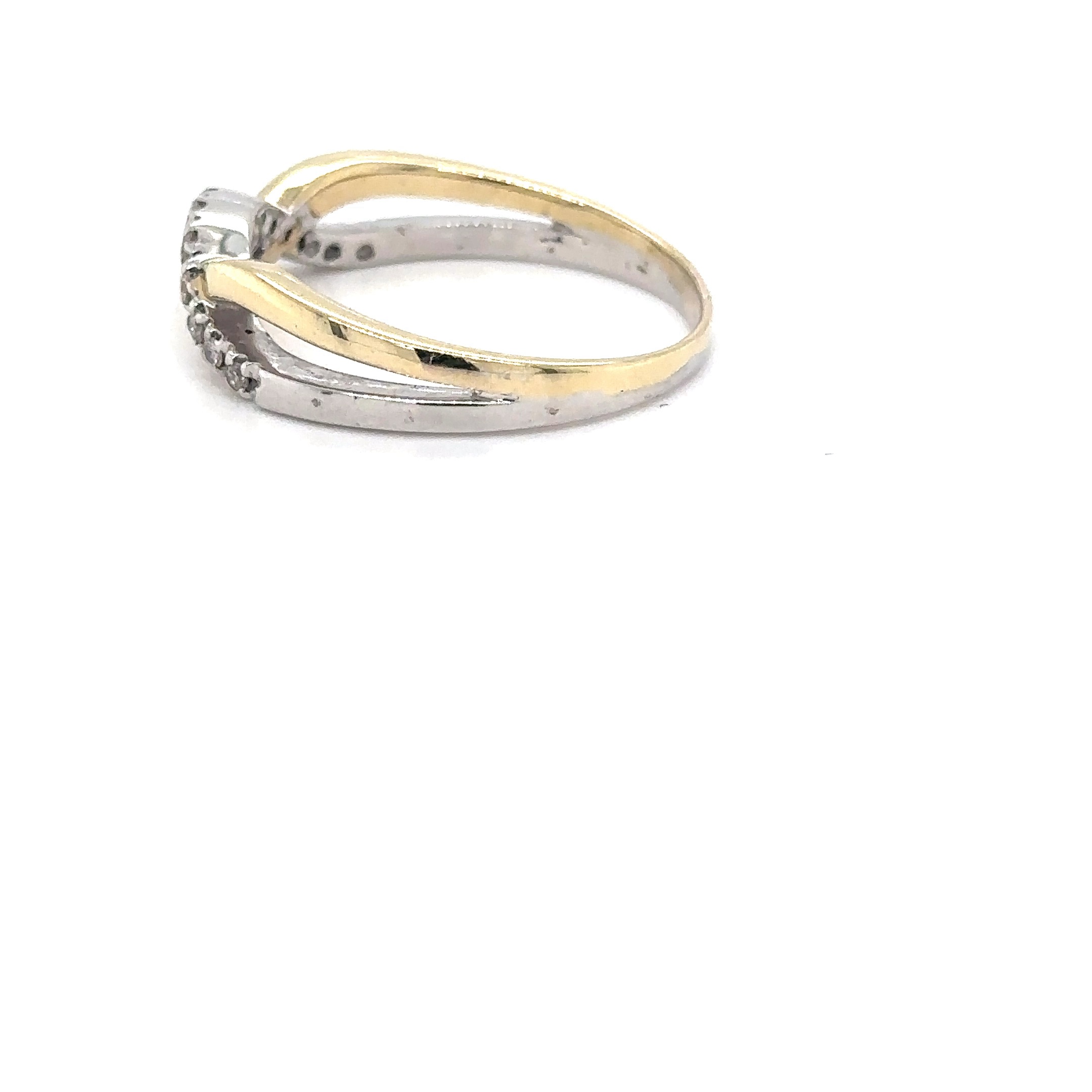 A perfect balance of classic charmant modern sophistication, this two tone diamond ring blends the timeless elegance of white gold with the rich warmth of yellow gold